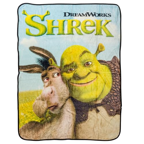 Silver Buffalo Shrek Donkey and Shrek Hugging 45" x 60" Fleece Throw, Soft and Cozy Blanket, 250 GSM