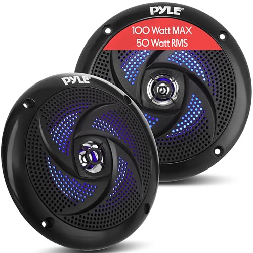 Pyle Waterproof Rated Marine Speakers - 4'' 2 Way Off-Road Vehicles & Weather Resistant Outdoor Audio Stereo Sound System w/ LED Lights, 100W Power, & Low Profile Slim Style, Pair, Black