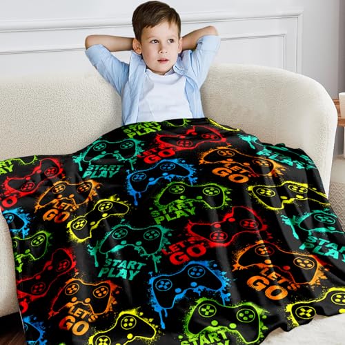 Wajade Game Blanket for Boys and Girls 3D Colorful Video Games Controller Blanket for Kids Teens Soft Warm Fuzzy Game Blanket for Couch Sofa Bed 60x80inch