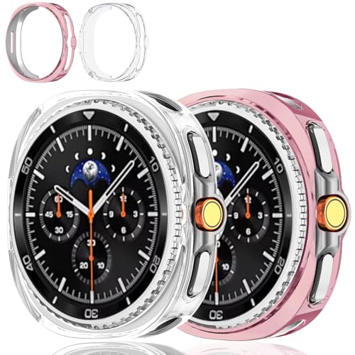 2 Pack Case Compatible with Samsung Galaxy Watch 8 Classic 46mm 2025 Soft TPU Watch Cover Protective Bumper Shell for Galaxy 8 Classic Accessories (Pink + Clear, Galaxy Watch 8 Classic 46mm)