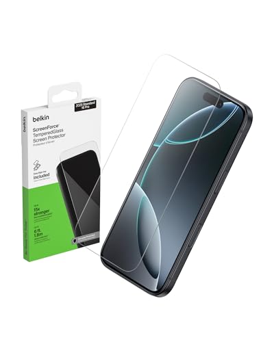 Belkin ScreenForce TemperedGlass Screen Protector for iPhone 17/16 Pro, Scratch-Resistant Impact Protection w/Included Easy Align Tray for Bubble Free Application, Recycled Glass