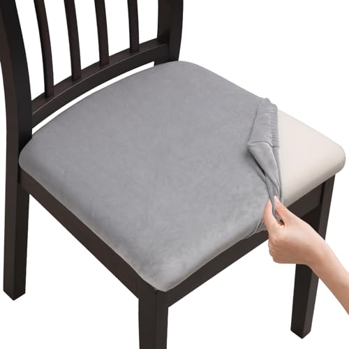 Fuloon Stretch Chair Seat Covers 6 PCS, Velvet Cushion Covers Washable Seat Cushion Slipcover Dining Room for Hotel, Ceremony, Banquet Wedding Party (Velvet Light-Grey, 6)