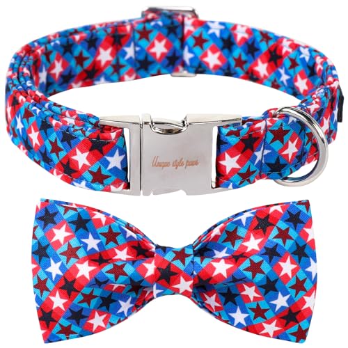 Patriotic Dog Collar with Bow, Unique Style Paws 4th of July Dog Collar, Independence Day Collars Adjustable American Stars Pet Collars for Small,Large Boy Girl Dogs