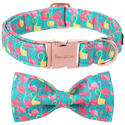 Unique Style Paws Summer Dog Collar with Bow, Flamingo Bow Tie Dog Collar,Cute Puppy Collar Green Dog Bow for Girl,Boy Dogs,XL,16-26in