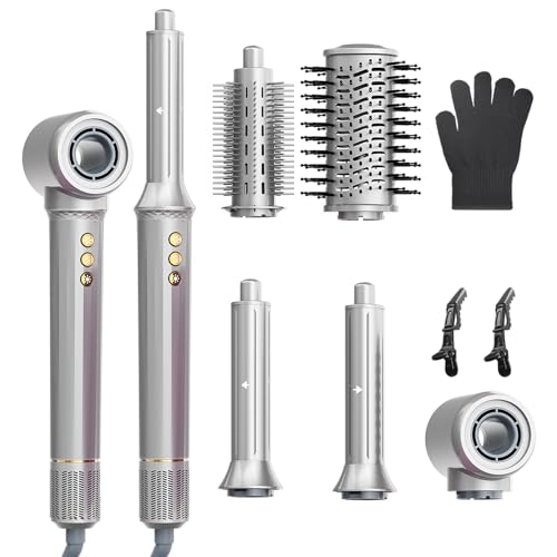 REITOW 5-in-1 Blow Dryer Brush Set - 110,000 RPM High Speed Hair Dryer & Airbrush Hair Multi Styler - No Heat Damage Auto Wrap Air Curler - Magic Hot Air Styler for at Home Styling Women Gray