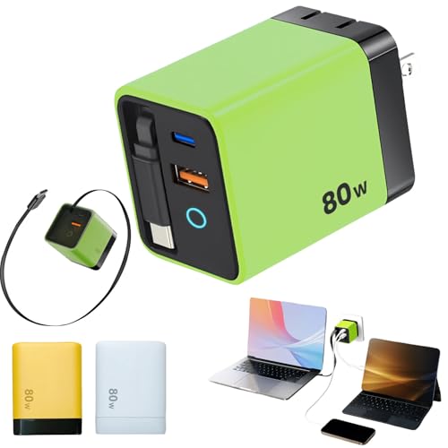 3 in 1 Charger Retractable 80w Max Fast, 2025 Upgraded 3-in-1 Retractable Phone Charger, Scalable 80w Max Fast Charger Module with Type-C Cable and 1 USB Ports for Phone,Tablet,Laptops,Watches (Green)