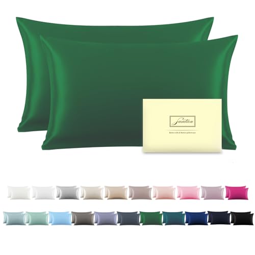 Silk Pillow Cases 2 Pack Soft Breathable and Sliky Standard Size Pillow Cases Set of 2,Natural Mulberry Satin Silk Pillowcase with Hidden Zipper for Hair and Skin (Olive Green,20"X 26",2pcs)