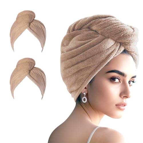 AGKXHDEC 2 Packs Single Layer Microfiber Hair Turbans - Drying Wrap for Women (Brown-2pcs)