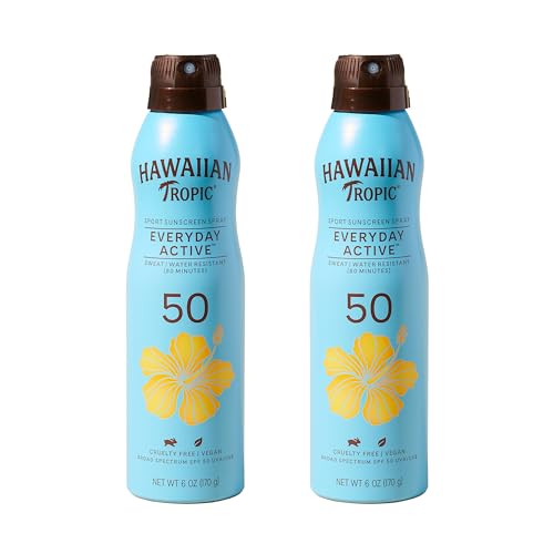 Hawaiian Tropic Everyday Active Spray Sunscreen SPF 50 | Body Sunscreen Spray SPF 50, Sunblock, Oxybenzone-Free, 6oz each Twin Pack