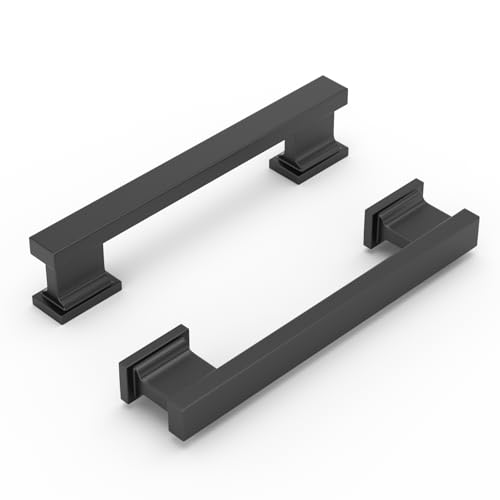 Banqin Cabinet Handles Kitchen Drawer Pulls and Knobs, 10Pack Black 3-3/4inch Hole Center, Square Hardware for Bathroom Dresser