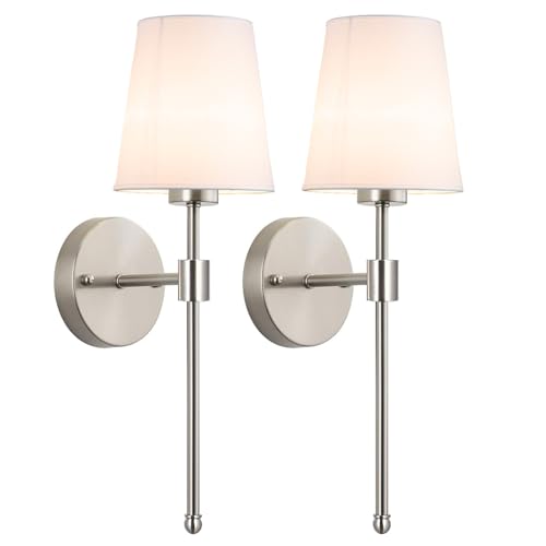 YHCDLAMP Battery Operated Wall Sconces Set of Two for Bedroom Living Room Hallway(Nickel)