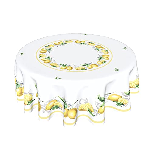 Kawani Summer Lemon Round Tablecloth 60 Inch Watercolor Lemon Yellow White Table Cloth Rustic Farmhouse Polyester Table Cover Decorative for Holiday Picnic Party Dining Room Home Indoor Outdoor Decor