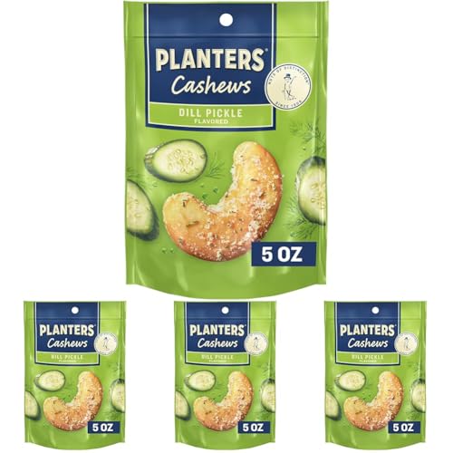 PLANTERS Cashews Dill Pickle - Trail Mix Snack Packs - Snacks with Dill Pickle, Snack Pack, Party Trail Mix, 5 Oz Bag, Pack of 4