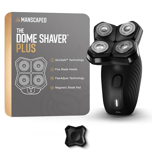 MANSCAPED® The Dome Shaver™ Plus Men’s Head Shaver – Four Double-Track Rotary Blades with SkinSafe® & FlexAdjust Technology, Waterproof, USB-C Charging, Magnetic Detachable Blade Pad, Travel Lock