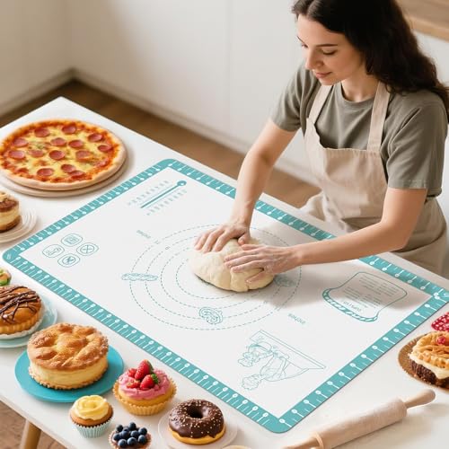 Non Stick Pastry Mat with 10 Quick Recipes, Silicone Dough Mat for Rolling, Silicone Mat for Baking Macaron, Cookie, Bread, Pizza,Surdough, Fondant Mat for Kitchen, Extra Large and Oven Safe