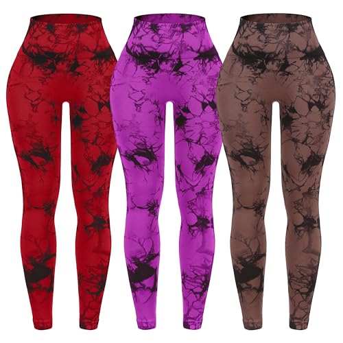 OVESPORT 3 Pack Tie Dye Seamless High Waisted Workout Leggings for Women Scrunch Butt Lifting Yoga Gym Athletic Pants
