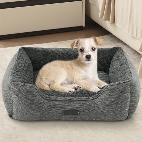 DEBANG HOME Dog Bed for Small Dogs Breeds, Rectangular Soft Kennel Bed,Washable Deluxe Plush Dog Crate Beds, Comfy Durable Pet Sleeping Bed with Pillow & Non-Slip Bottom, Size (24"X21" Gray)