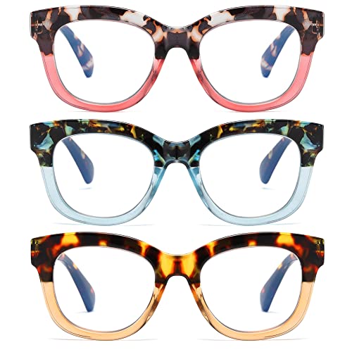 ZXYOO Oversized Reading Glasses for Women,3 Pack Blue Light Blocking Computer Spring hinge Readers(Yellow Sunset&Blue Sunset&Pink Sunset+0.00)