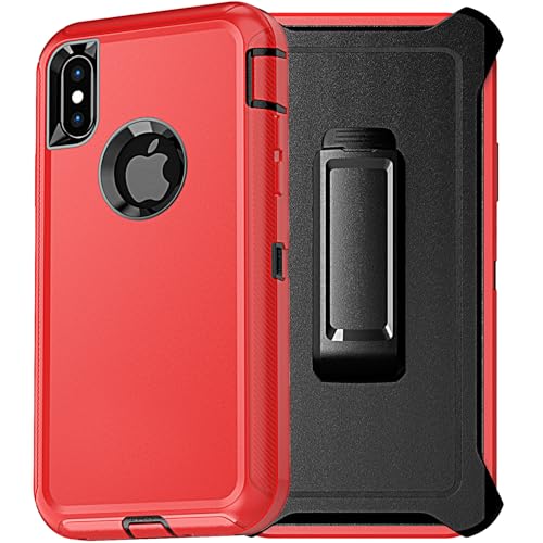 YmhxcY for iPhone Xs Max Case, 3-Layer Full Body Protection Shockproof Drop-Proof Heavy Duty Phone Case with Belt Clip Kickstand for iPhone Xs Max 6.5"-Red/Black