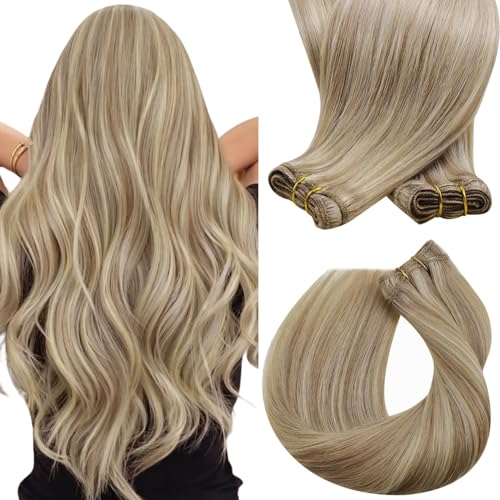 Sunny Hair Sew in Hair Extensions Real Human Hair Blonde Highlights 22inch 135g Weft Hair Extensions Human Hair Dark Ash Blonde Mix Light Blonde Human Hair Sew in Extensions for Real Hair Long Last