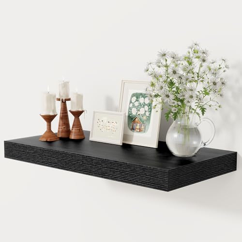 12 Inch Deep Black Floating Shelves, 24 x 12 Floating Shelf for Books, Rustic Wood Deep Wall Shelves for Home Storage & Display, 2" Thicked Shelves for Kitchen, Living Room, Bedroom, 1 Pack