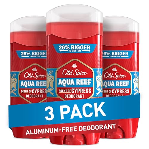 Old Spice Aluminum Free Deodorant for Men, 24/7 Odor Protection, 24/7 Freshness & Lasting Scent, Aqua Reef with Cypress Scent, 3.8 oz (Pack of 3)
