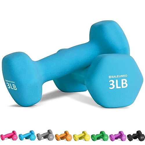 Balelinko Home Gym Equipment Workouts Strength Training Weight Loss Pilates Weights Yoga Sets Free Weights for Women, Men, Seniors and Youth, 3LB Blue, Pair