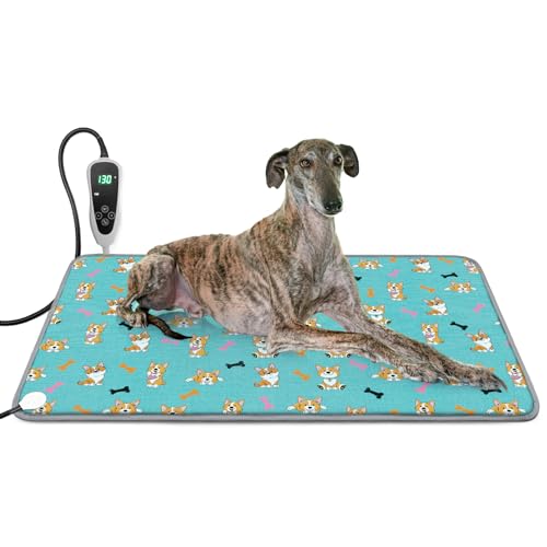 GOLOPET Extra Large Dog Heating Pad 47x30 in Waterproof Smart Thermostat Switch, Whelping Supplies Heated Dog Bed, Adding Wire Rope Wires Puppy Heating Pad Mat-Blue