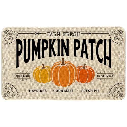 Fall Front Door Mat, Fall Outdoor Welcome Mat, Pumpkin Patch Autumn Doormat Country Outdoor Rug Indoor, 17" x 30"
