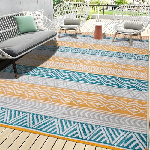 BMCH Outdoor Rugs, Outdoor Plastic Straw Rug, Reversible Waterproof Carpet for Camping, Poolside, Garden, BBQ Area, Gazebo Flooring, RV Park & Beach, Colourful Style, 9x12