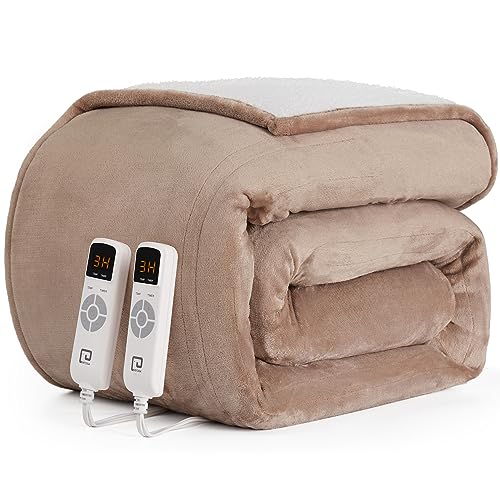 EHEYCIGA Heated Blanket - King Size, 9 Heating Levels, Auto Off, Soft Cozy Sherpa, Dual Control, 90 x 100 Inches