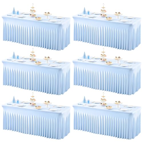 6 Packs Baby Blue Spandex Table Clothes for 6 Foot Rectangle Table, Spandex Table Covers 6FT Stretch Table Skirts Rectangle Tables Wrinkle Free Fitted Table Cover for Event, Wedding, Banquet & Parties