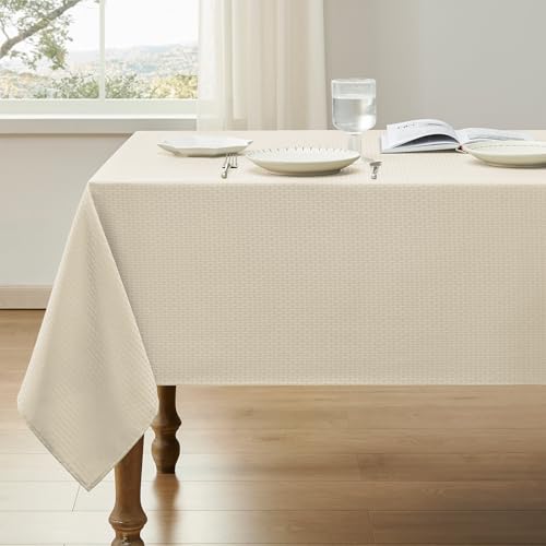 Veblandy Rectangle Tablecloth Weaved Textured Water Resistant Spill Proof Table Cloth, Decorative Fabric Wrinkle Free Table Cover for Events and Dinner, 60×144 Inch, Ivory