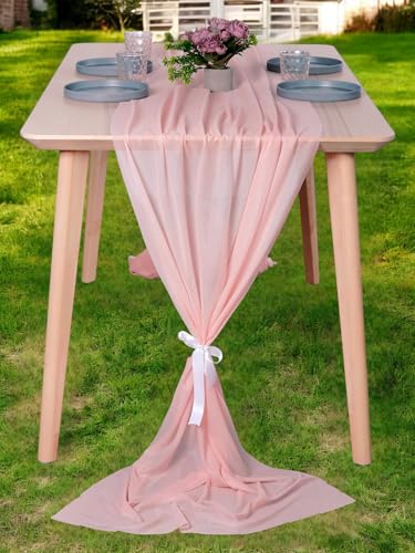 MDS 1 Pack 14ft Chiffon Table Runner 29 x 170 Inches Sheer Wedding Runner Romantic Rustic Table Runner for Wedding Decorations, Birthday Parties, Bridal Shower Party Arch Decor - Dusty Rose