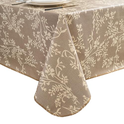 LIBERECOO Vinyl Tablecloth with Flannel Backing –Indigo Botanical Charm, Waterproof, Wipeable, Durable Table Cover – 4 Colors