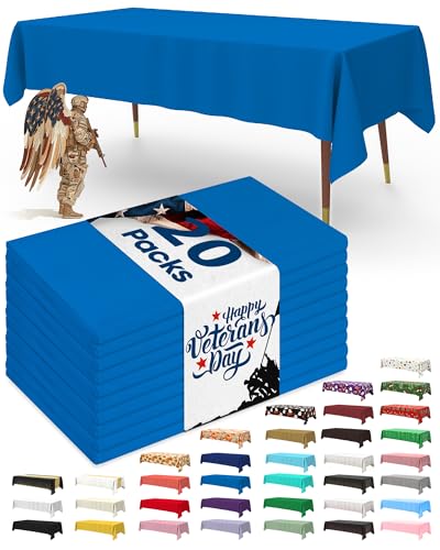 Pureegg Plastic Table Cloth Disposable 20 Pack, 54 x 108 Inch Table Cloths, Graduation Decorations Class of 2025, Graduation Party Tablecloths, Rectangle, Plastic Cover, Leakproof & Sturdy, Blue