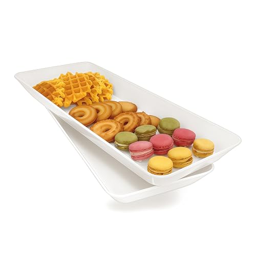 AMGBZT Serving Tray Platter Rectangle, 2 Pcs Long Narrow Food Tray for Veggie Fruit Snack Dessert, Plastic White Food Trays for Party Supplies Display, Rectangular Platters for Serving Food, BPA Free