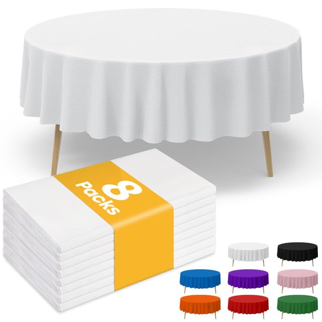 Niuara White Plastic Table Cloth - 8 Pack 84" Round Disposable Tablecloths for Round Tables, Waterproof Table Cover for Holiday Parties & Gatherings