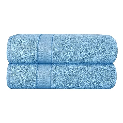 GLAMBURG 700 GSM Premium Cotton 2-Pack Oversized Extra Large Bath Sheet Set - 100% Combed Cotton - 2 Bath Sheets 35x70 - Luxury Hotel & Spa Quality - Durable Ultra Soft Highly Absorbent - Sky Blue
