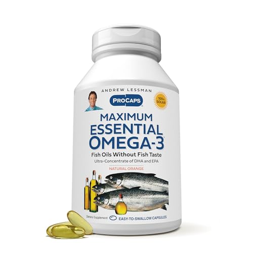 ANDREW LESSMAN Maximum Essential Omega-3 Orange - 60 Softgels - Ultra-Pure, High Potency Omega-3 Oils. High DHA, No Stomach Upset, No Contaminants, No Mercury. Small Easy to Swallow Softgels