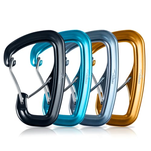 Travel Bird Heavy Duty Carabiner Clip Hook 8KN (1763 lbs), 4 PCS Ultra-Light Aluminum Caribeaners with Double Door D Ring Shape, for Hammock, Camping, Hiking, Backpacking, Dog Leash, Keychain Clip