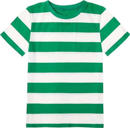 COSLAND Toddler Boys St Patricks Day Shirt Kids Green and White Short Sleeve Striped Easter Shirt, Green and White, 3T