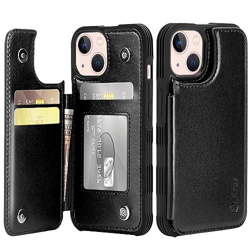 Arae for iPhone 13 Case with Card Holder - Wallet Case with PU Leather Card Pockets Back Flip Cover for iPhone 13 6.1 inch, Black