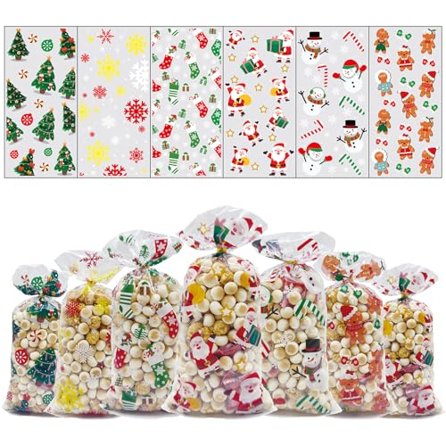 ONFAON Christmas Candy Bags - 180 Treat Bags with 200 Twists for Snacks, Cookies & Candy Packing