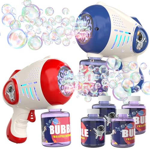 EagleStone Bubble Guns for Kids 4-8, 2 Pack Light-Up Automatic Bubble Gun Blasters with 4 Solution, Bubble Machine for Toddlers, Outdoor Summer Toy, Easter Gifts, Birthday Wedding Party Favors