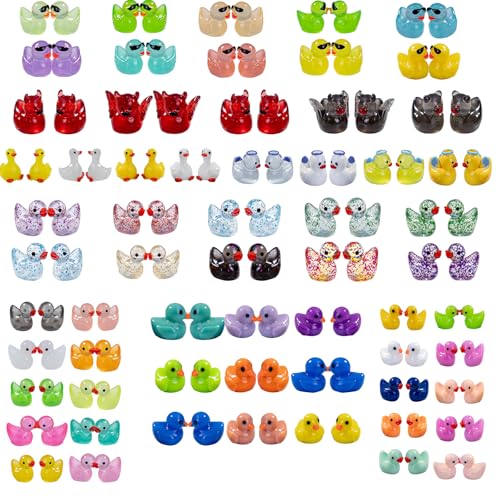 122 PCS Mini Ducks Resin,Colorful Multiple Styles Tiny Animals,Little Small Cute Duck Decoration Pattern, Sunglasses, Shiny, Proud, Angel, Demon Ducks Doll House Landscape Decoration DIY