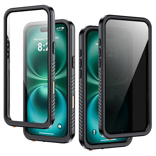 AMILIFECASES for iPhone 16 Plus Case Waterproof, Built-in Privacy Screen & HD Screen Double Front Frame [IP68 Underwater] Shockproof Dustproof Full Body Protection iPhone 16 Plus Phone Case Black