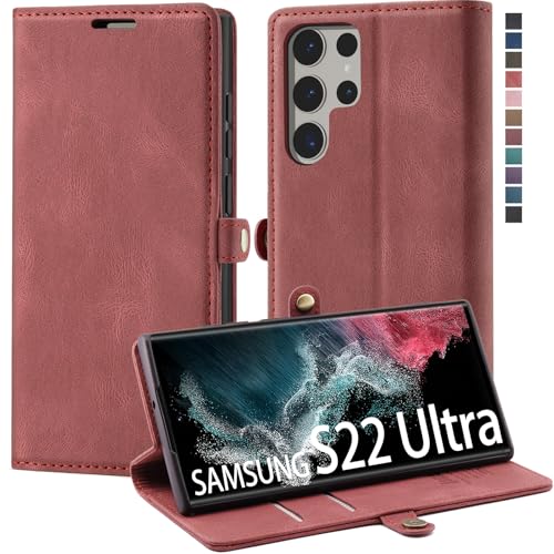 Samsung Galaxy S22 Ultra Wallet Case,RFID Blocking,Magnetic Kickstand, Soft Leather Flip Case with Card Slots & Pockets - 6.8" (Wine Red)