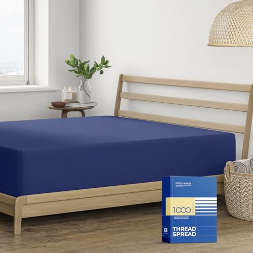 Thread Spread Egyptian Cotton Sateen Weave - 1000 Thread Count Fitted Sheet Only Elastic All Around - Fits Mattress Upto 18" by Thread Spread - 1 Fitted Sheet - Twin 16 in Deep - Navy Blue
