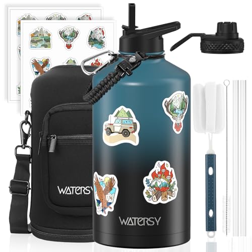 1 Gallon Water Bottle Insulated(Cold for 48 Hrs),BPA Free&Leak Proof,128oz Stainless Steel Water Jug,Large Water Bottle with Straw Spout Lids for Gym,Hiking,Camping&Travel,Black Blue